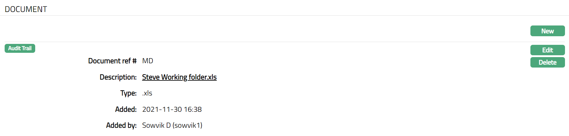 Note: Only the Document Reference # & Description are editable.