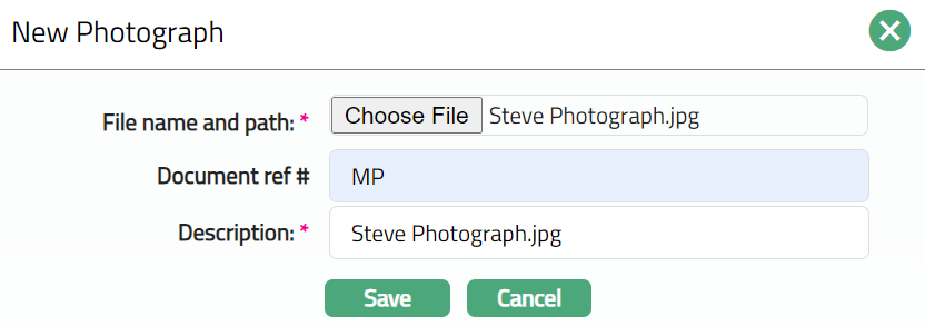 Photograph tab allows you to upload photograph related to the person and store with photograph reference number. These can be in the form of .pdf/.jpg/.jpeg etc.,