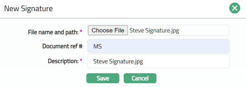 Signature tab allows you to upload the image of the person's signature. These can be in the form of .jpg/.jpeg etc. and stored with a reference number.