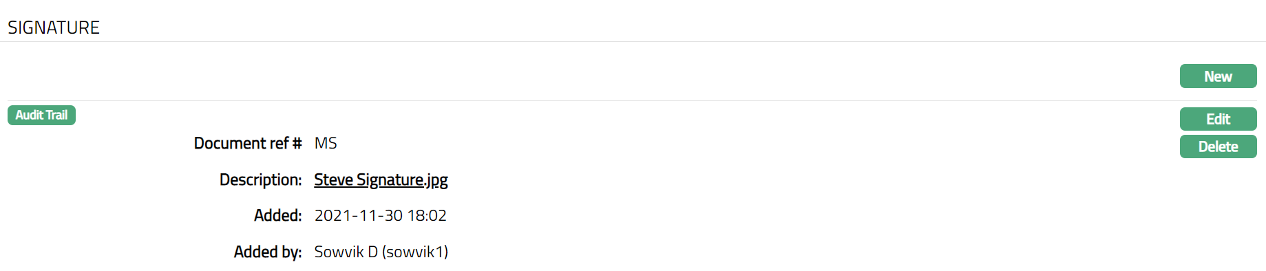 Added By:This is the field which display the name of the person who added the Signature.