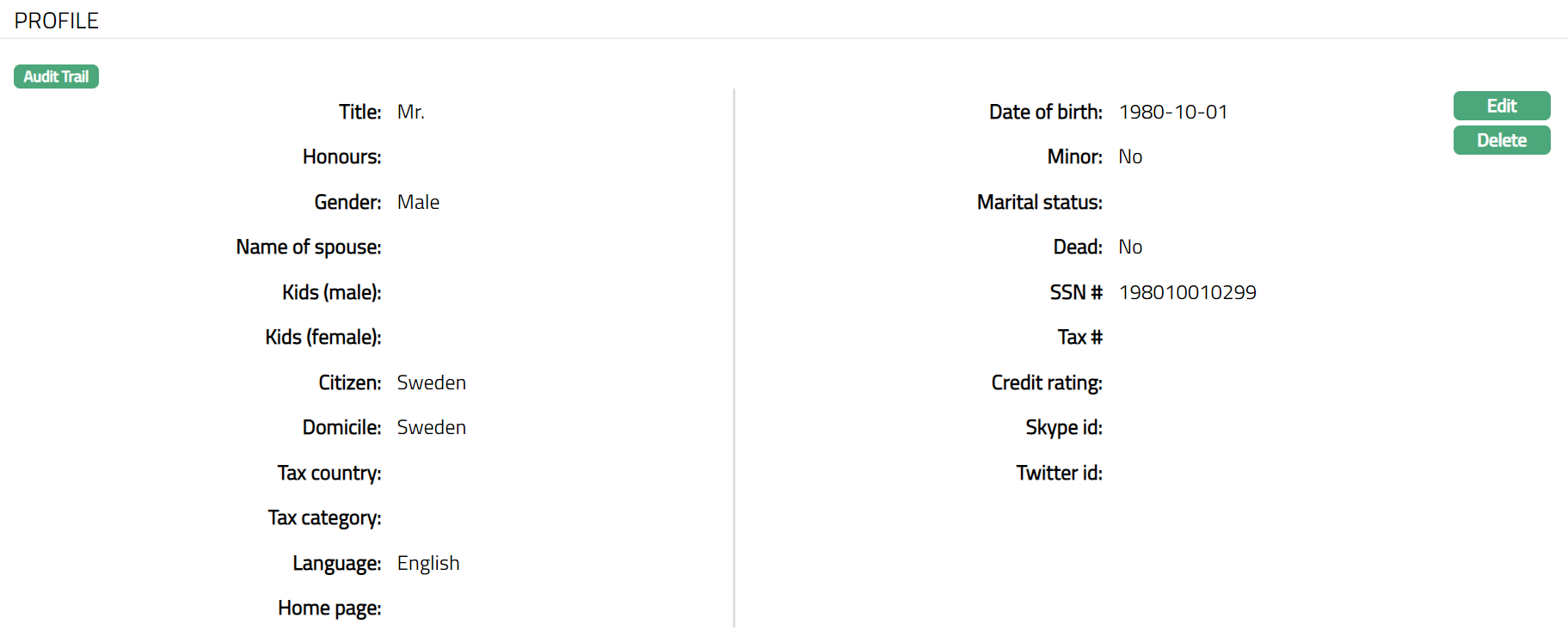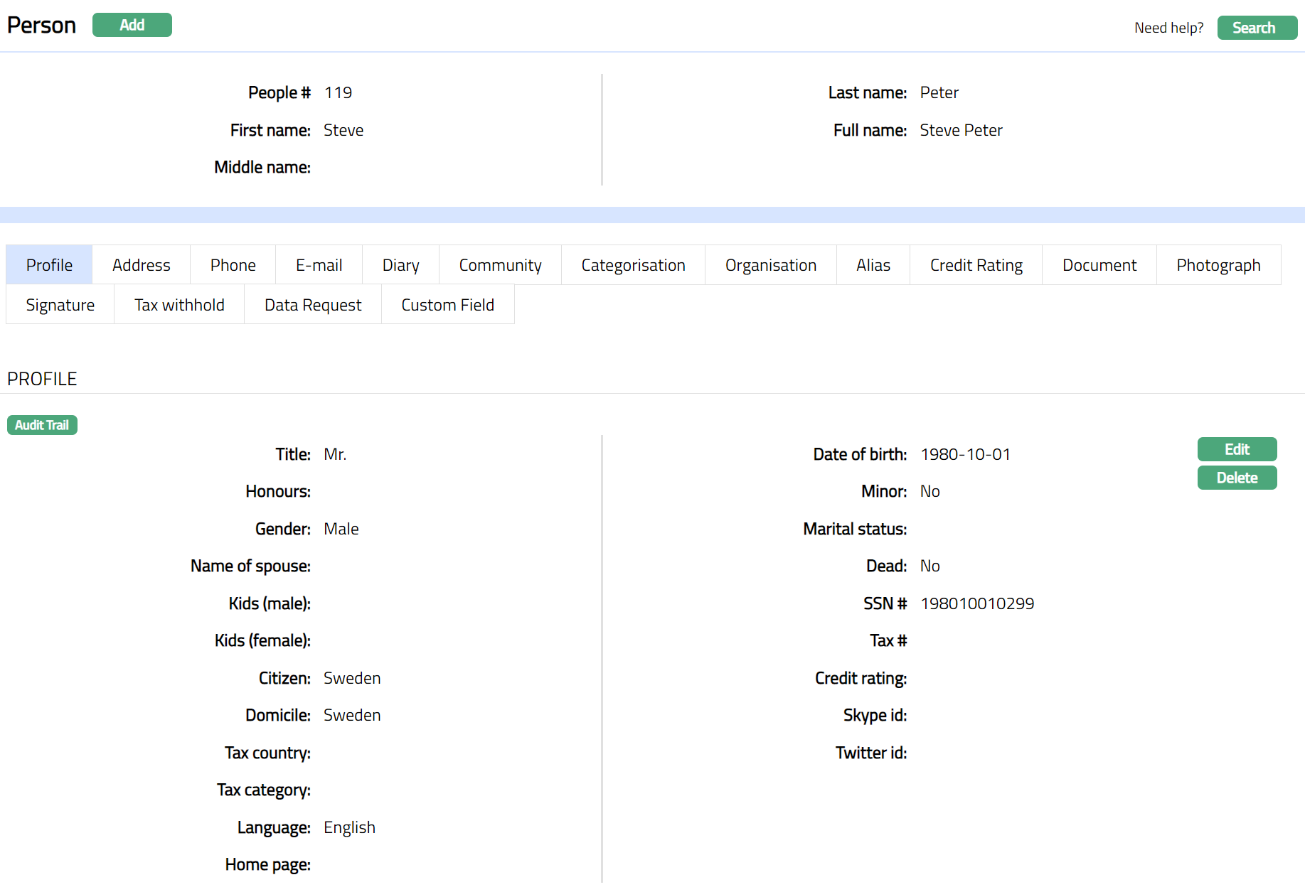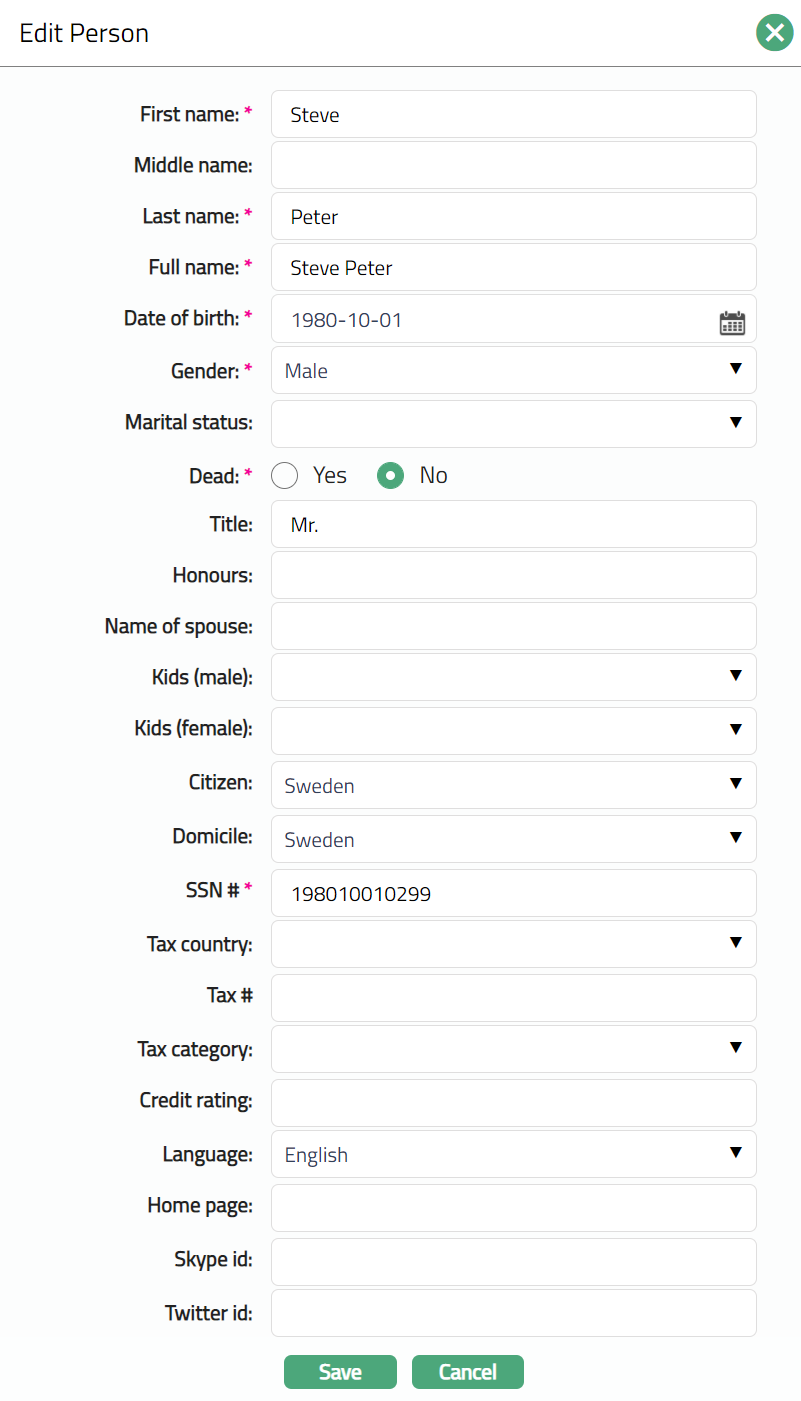 - Click Edit. Edit Person page appears.
