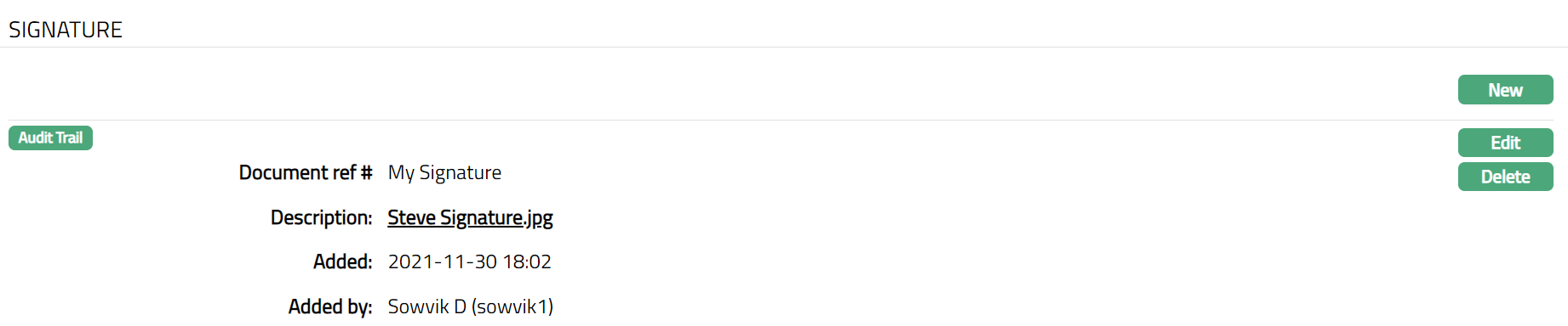 To edit Signature record,
