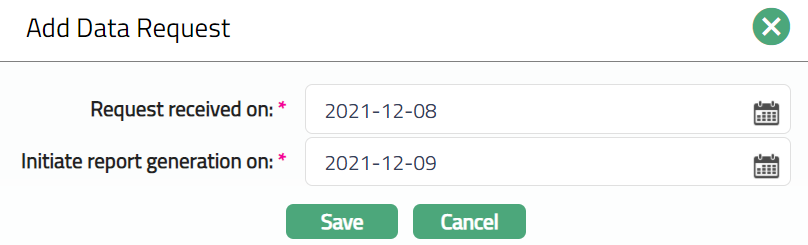- Click Save. Data Request page appears as follows: