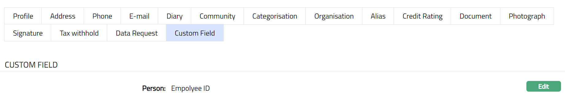 - Access Person page and click Custom Field tab.