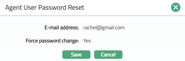 Reset Password: If you want to reset the password for the Agent User, then click on Reset Password button. Aura displays an alert message. On confirmation Aura will automatically generate a password and send to the Agent User.
