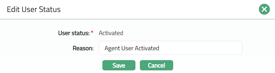Activate: If you want to activate a suspended Agent User then click on Activate button. Aura will ask for confirmation. On confirmation Aura will Activate the User and Suspend button will appear in place of Activate button.