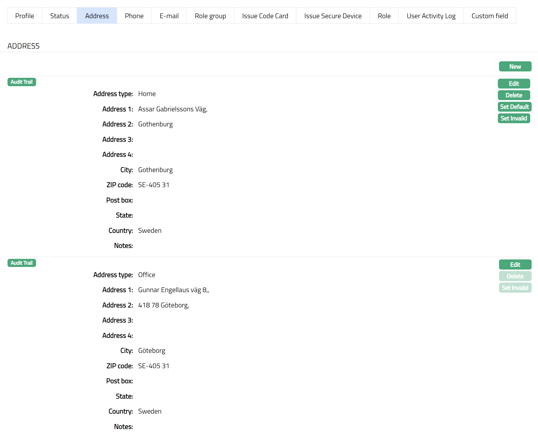Set Default: When you create multiple address records, you can set one of them as the default address using this button. When there is only one address, the same is taken as the default address.