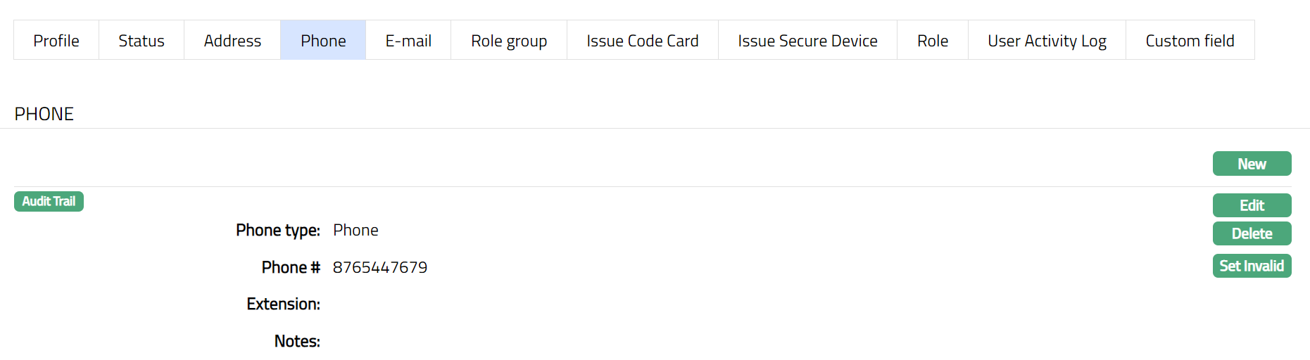 - Access Agent User Maintain page and click Phone tab. The details are defaulted from the entries that you made during creation of a New Agent User. For details refer to New Agent User -- Phone (4/6).