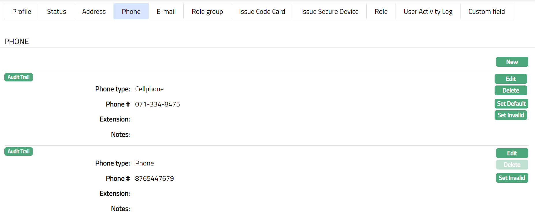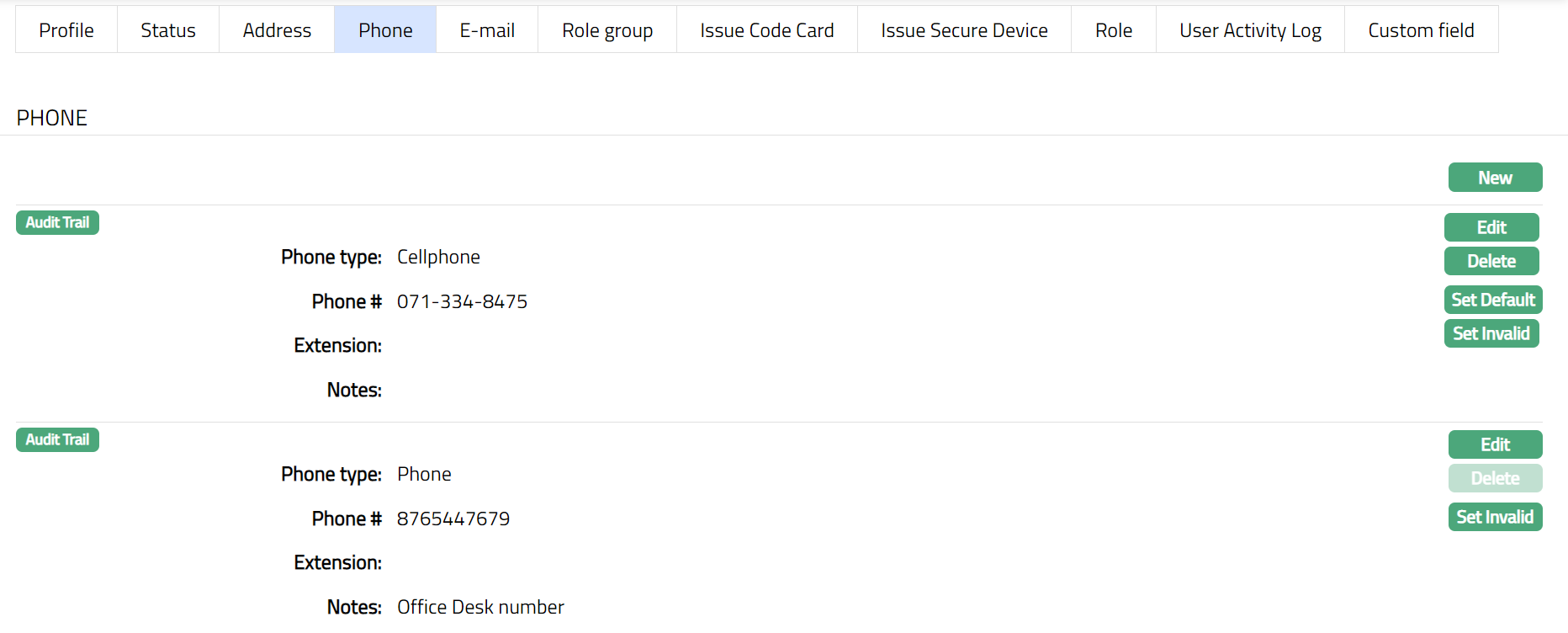 Set Default: When you create multiple Phone records, you can set one of them as the default Phone details using this button. When there is only one Phone detail, the same is taken as the default Phone.