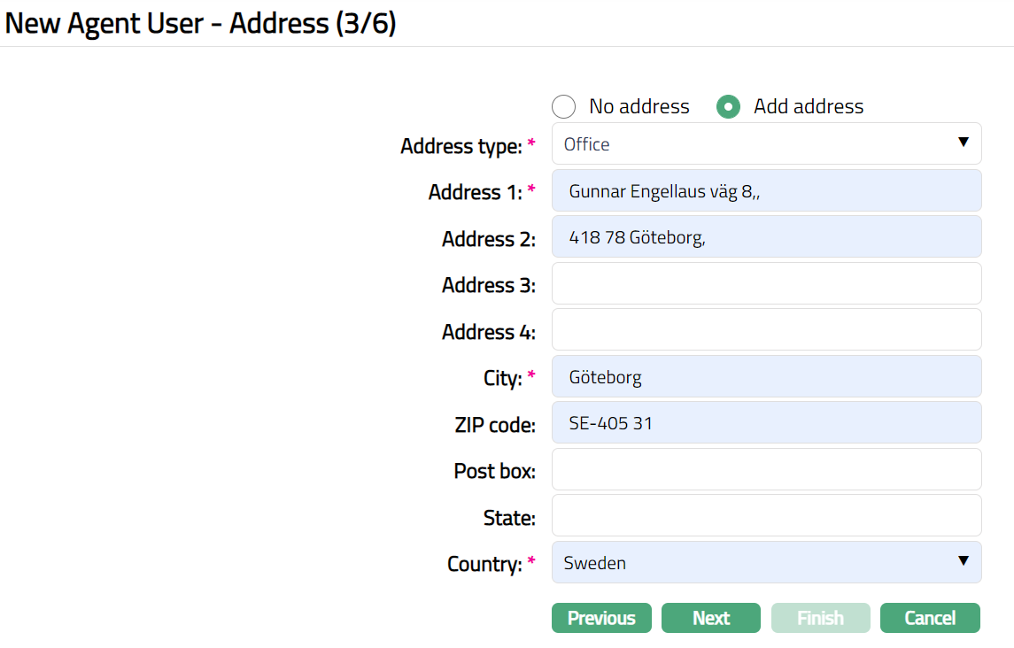By default, No address is selected. If you do not want to record the address of the user at this stage, then you can select this option.