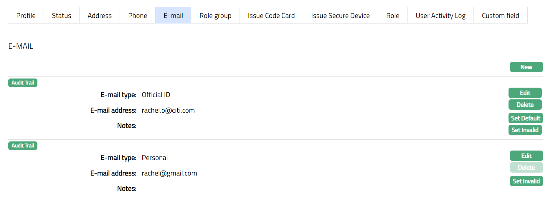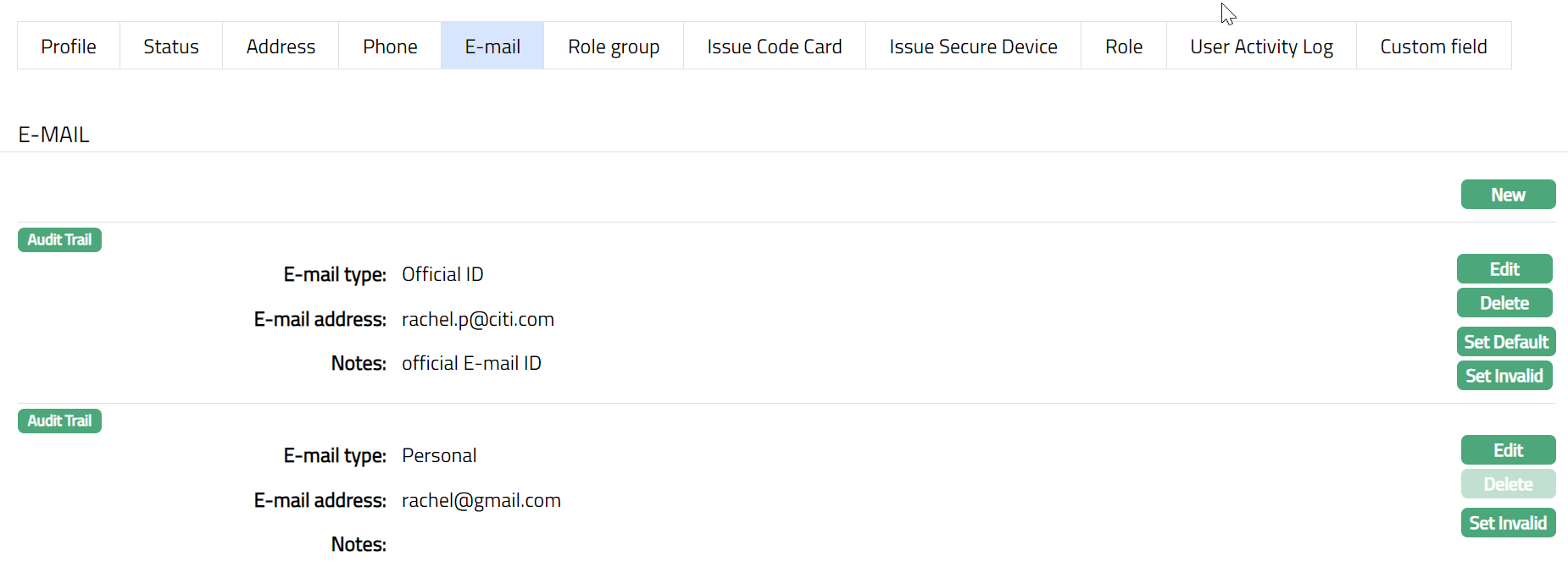 Set Default: When you create multiple E-mail records, you can set one of them as the default E-mail details using this button. When there is only one E-mail detail, the same is taken as the default E-mail.