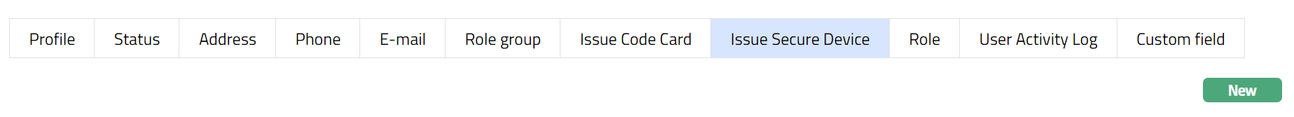 - Click New. Issue Secure Device page appears. Note: New button will be enabled only when Certificate method is chosen.