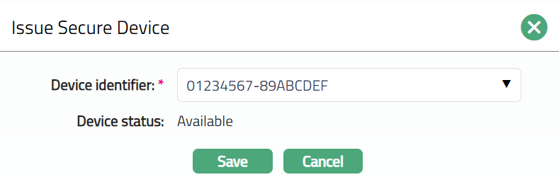 Select Device identifier from the dropdown list maintained under Admin > Secure stationery > Secure device. You can add only one device for a user.