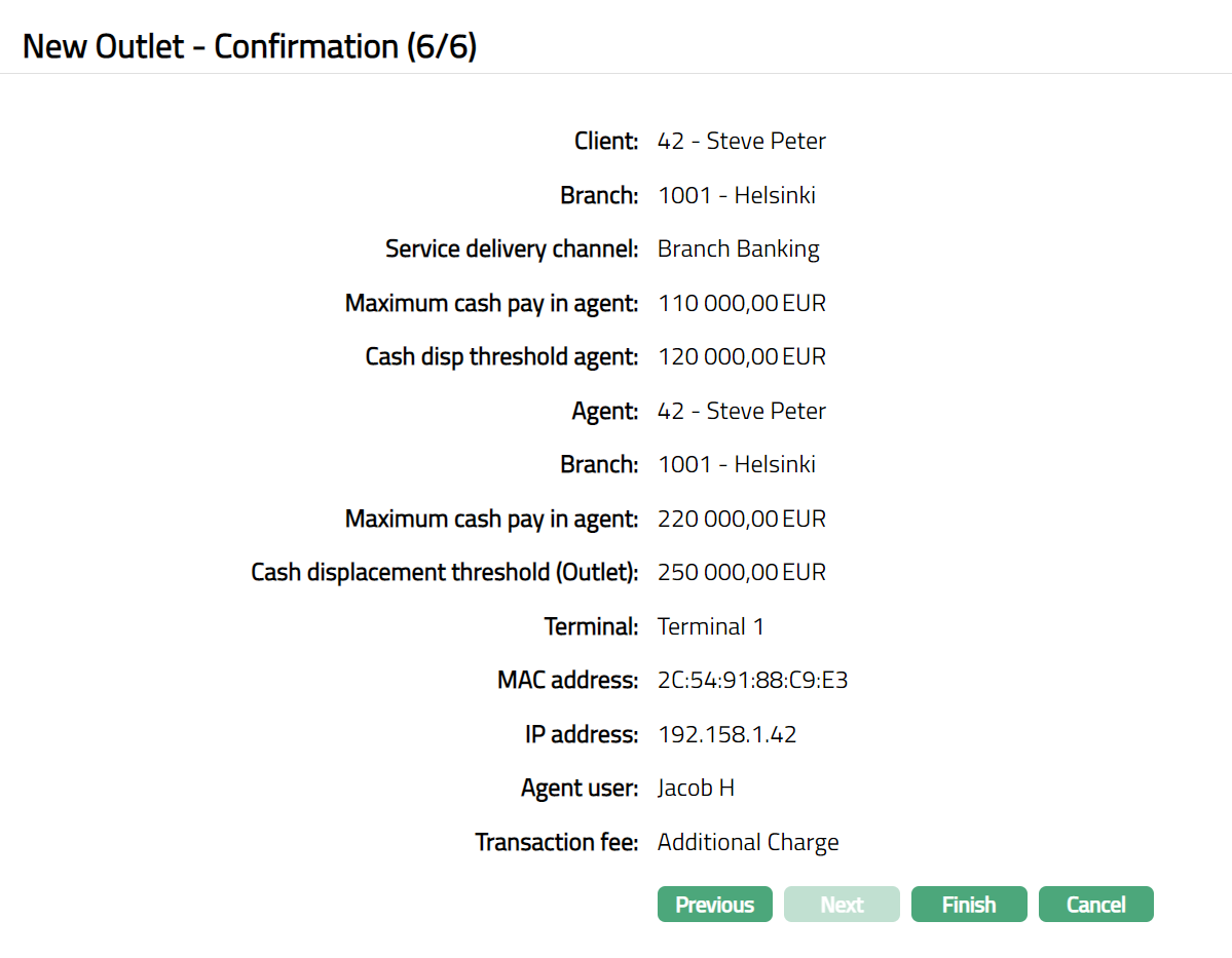 If an Outlet is linked to an Agent, and at outlet level if settlement instructions is not maintained for the selected client; then for the transactions performed at outlet level Aura will use linked Agent client settlement instructions for settlement.