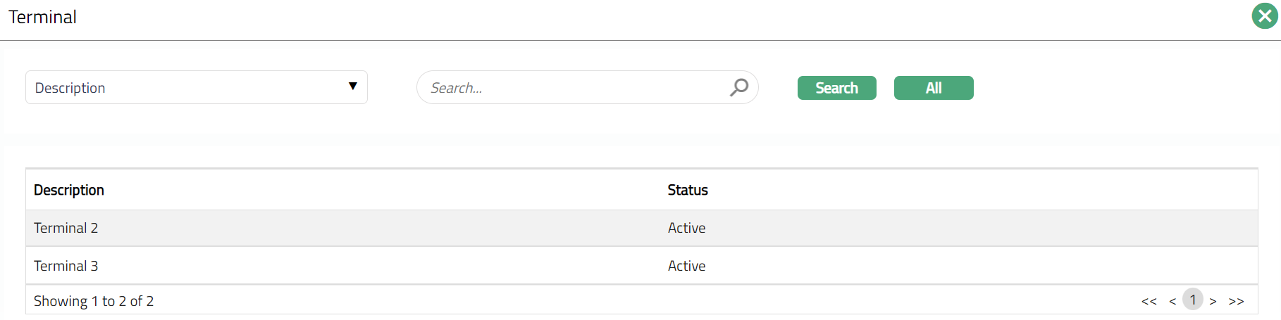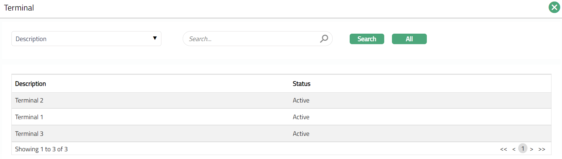 - Click Terminal hyperlink to add a Terminal. Aura displays all the maintained active and unmapped Terminal.