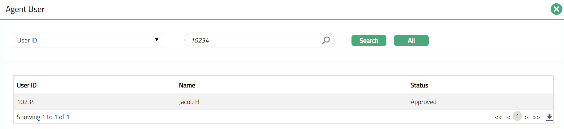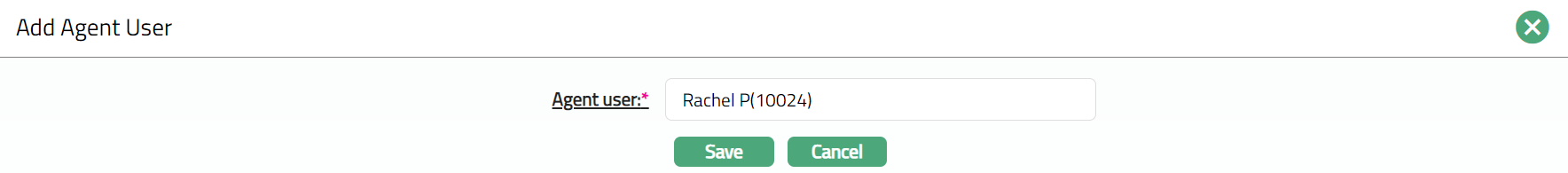 If Add agent user option is chosen, then Agent user hyperlink is enabled. On click of the hyperlink, all the active and unmapped agent users maintained under CRM > Sales > Agent user is displayed in the list. Select the required Agent user.