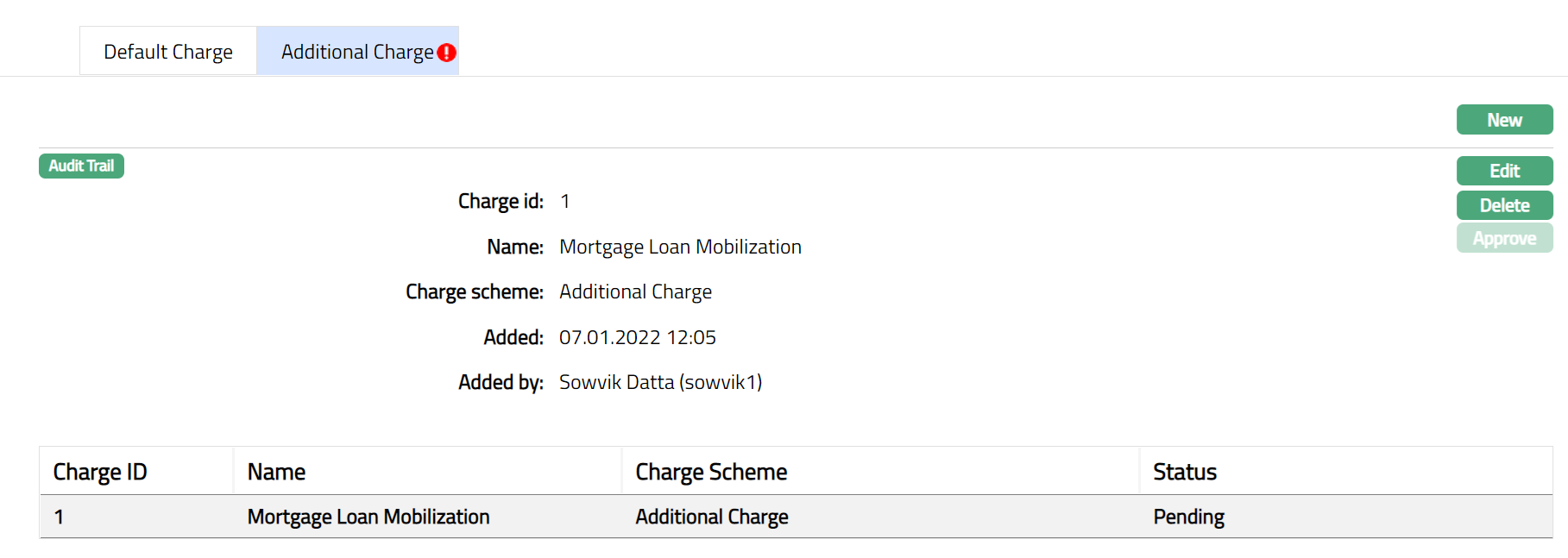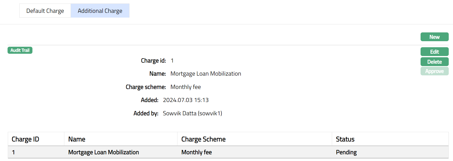 - Click New. The New Additional Charge page appears.