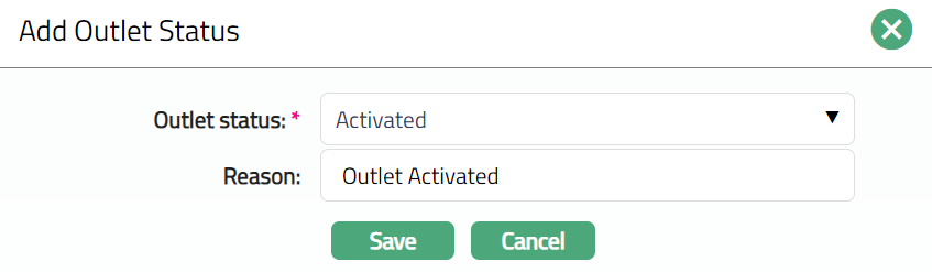 - Click Add. Add Outlet Status page appears.