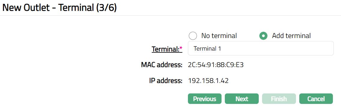 - Click Add. Add Terminal page appears.