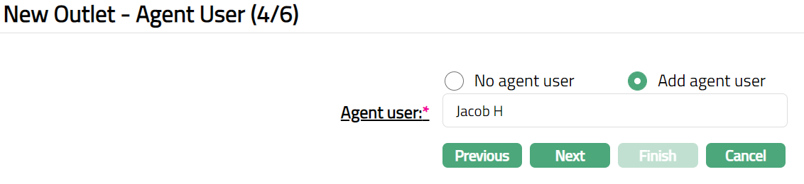 Click Next. New Outlet -- Agent User (4/6) page appears.