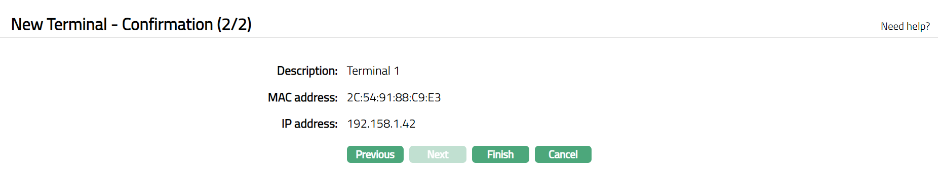 Click Next. New Terminal -- Confirmation (2/2) page appears.
