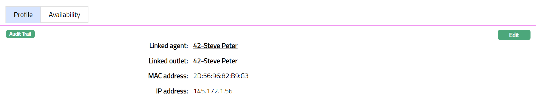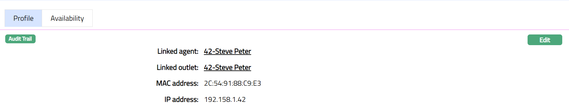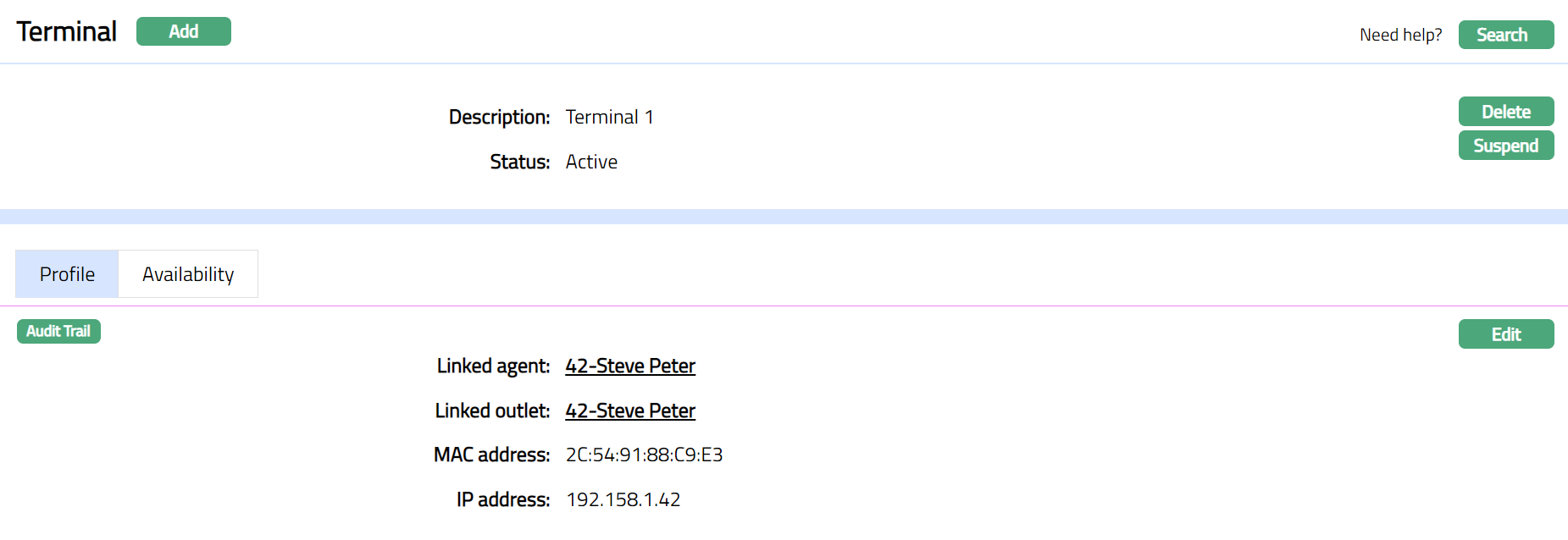Linked Agent: The field displays the Agent linked to Terminal by default. The mapped Agent will be displayed as hyperlink. On click of the hyperlink, Agent page appears.