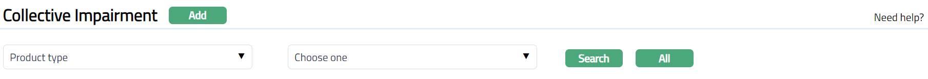 - From General Ledger menu, click Collective Impairment and then Maintain. Collective Impairment Search Page appears.
