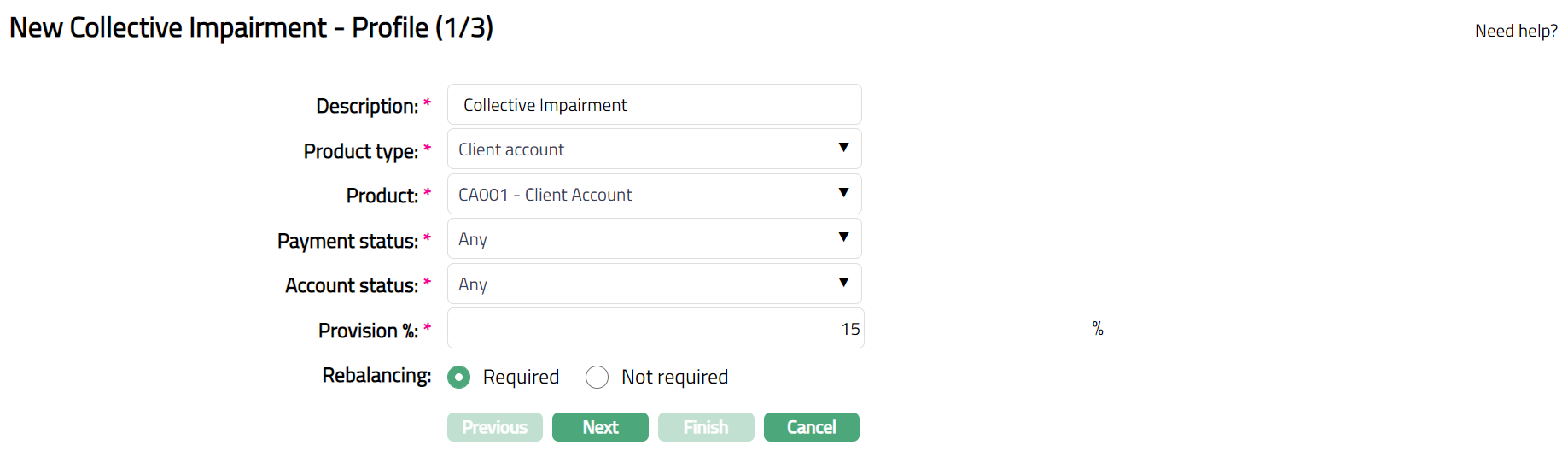 - Click Add. New Collective Impairment - Profile (1/3) page appears.