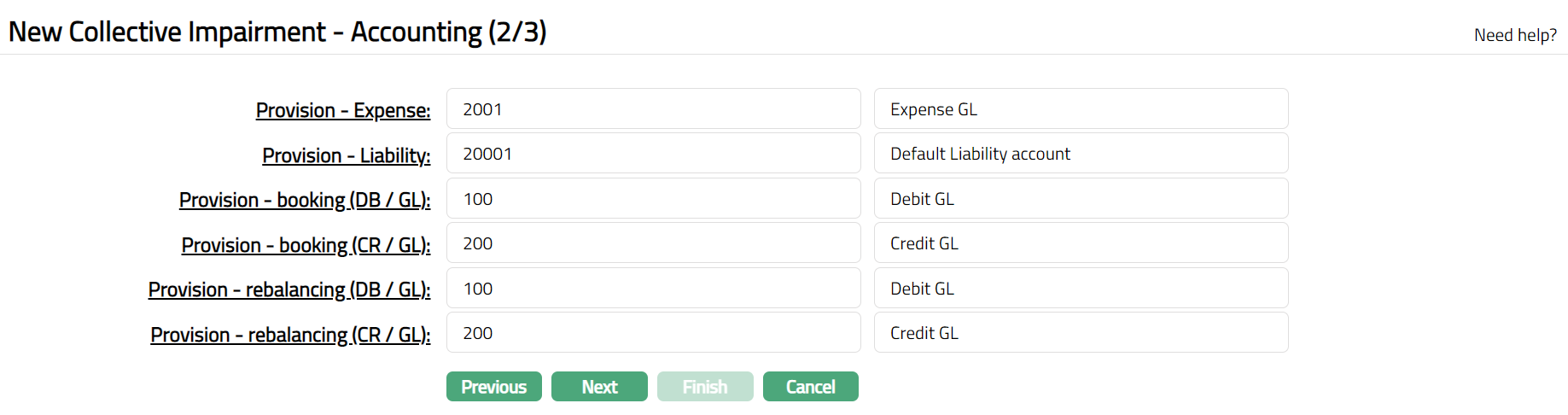 - Click Next. New Collective Impairment - Accounting (2/3) page appears.