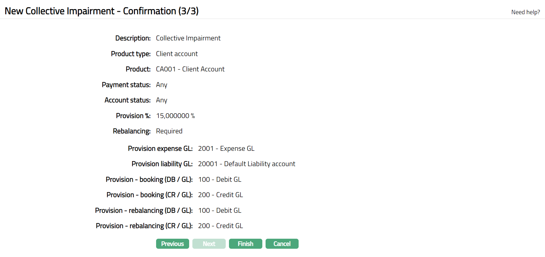 - Click Next. New Collective Impairment - Confirmation (3/3) page appears.