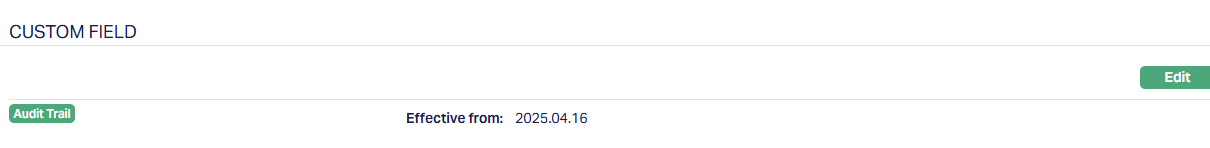 - Click Edit. Edit Custom Field page appears showing the Effective From category that has been mapped to Related Transaction Settings as shown below: