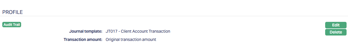 You can select an existing and active Journal Template from the drop-down list. The related transaction accounting entry will be triggered automatically using the parameters in this Journal Template when the corresponding transaction code is used in any transaction.
