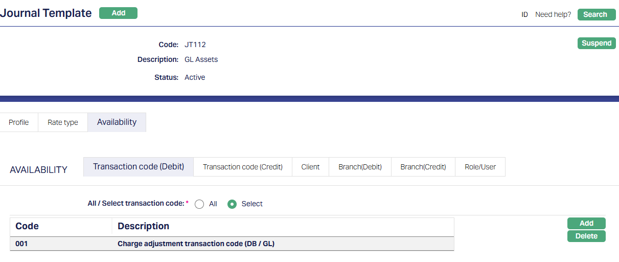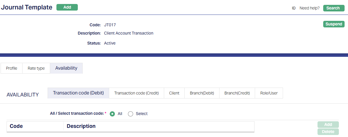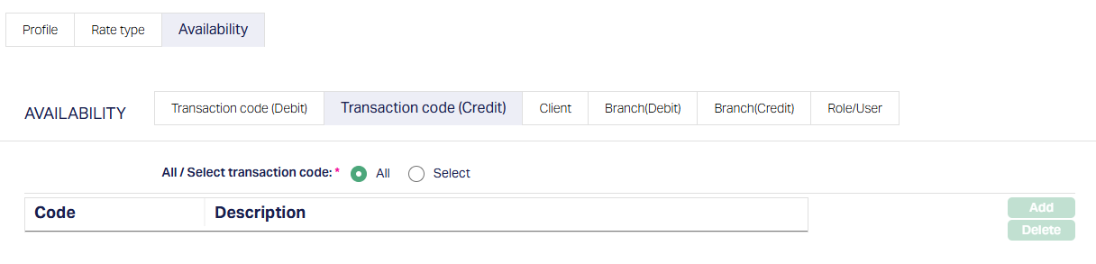 If transaction code pertains to a client account, choose Transaction Type as Client account; similarly, if the transaction code pertains to a General ledger, choose General Ledger from the list of available drop-down.