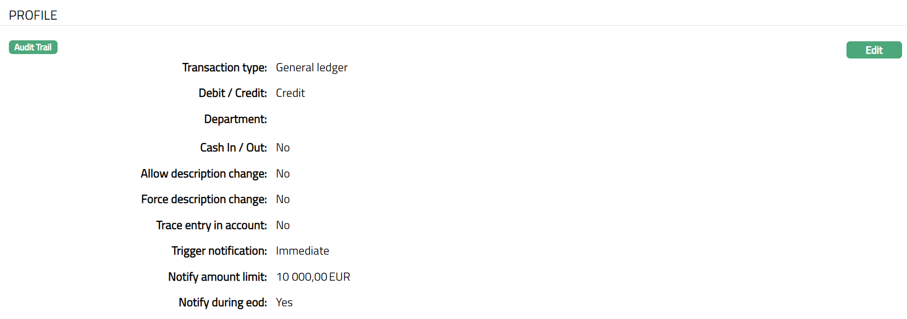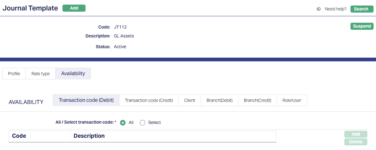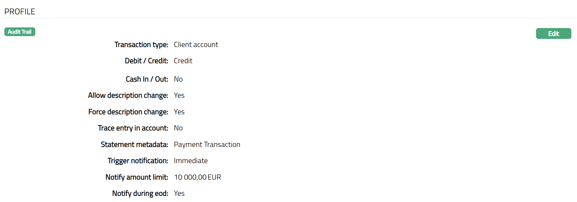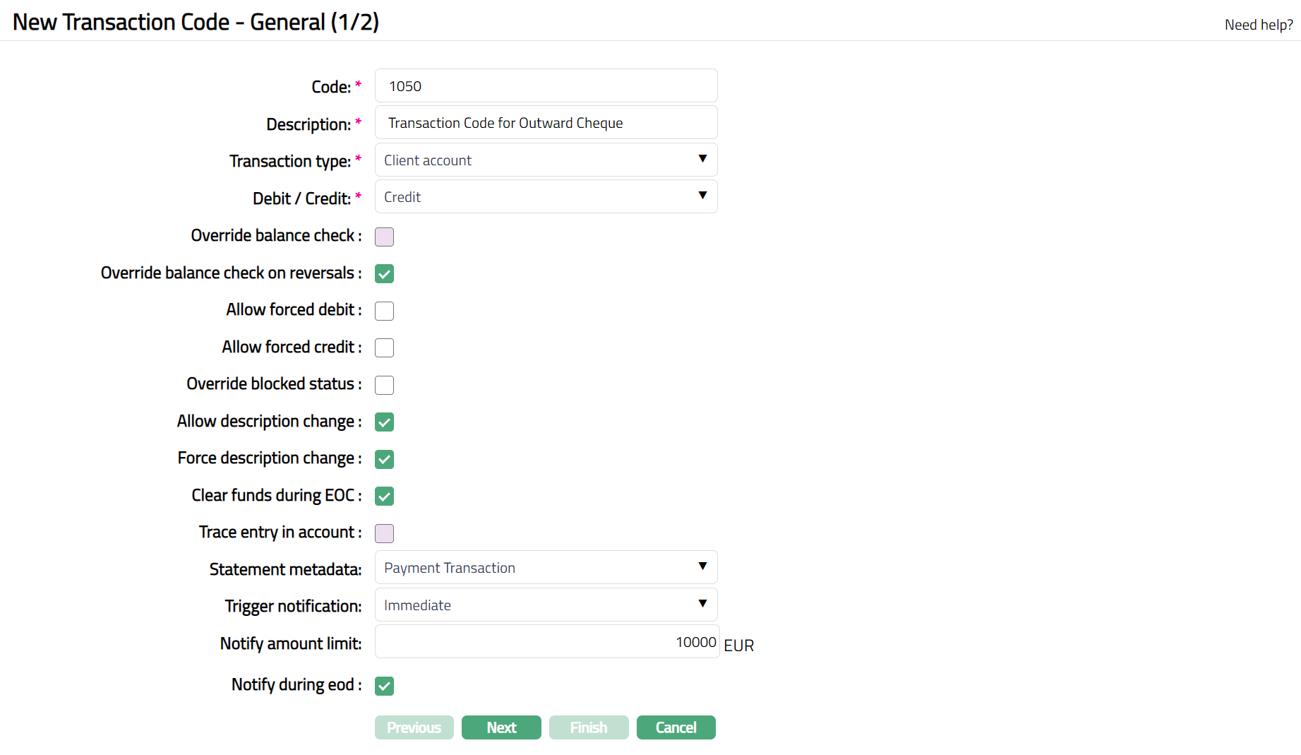 Note: Except Code, Transaction type, Debit/Credit fields, rest all other fields are editable.
