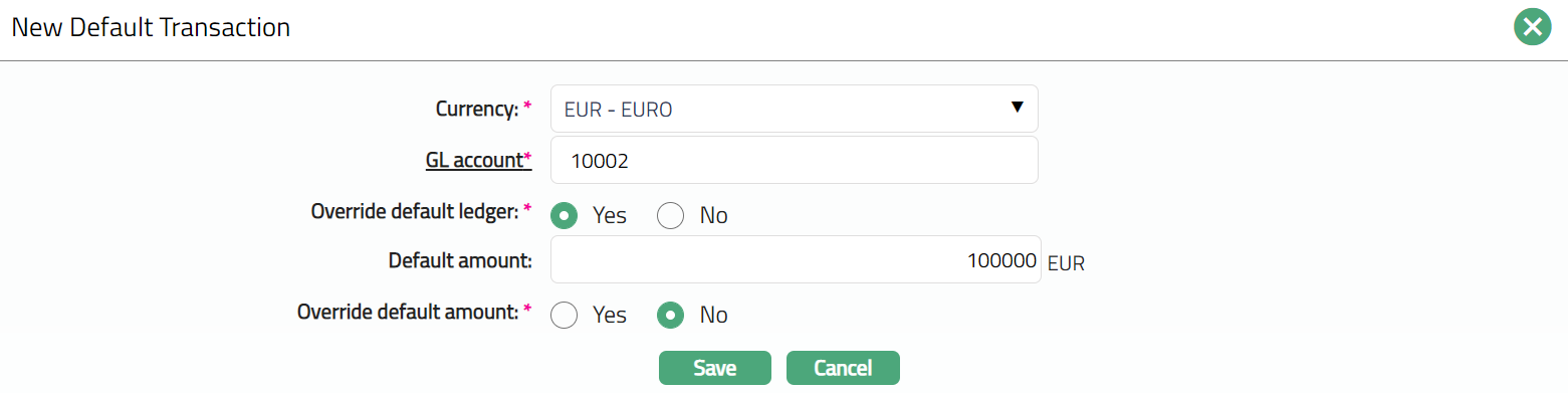 If General Ledger is selected as Transaction Type, the check box against Override balance check, Override balance check on reversals, Allow forced debit, Allow forced credit and Override blocked status are disabled.