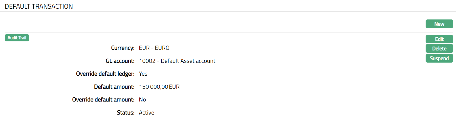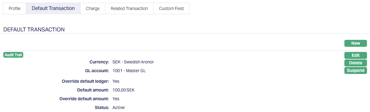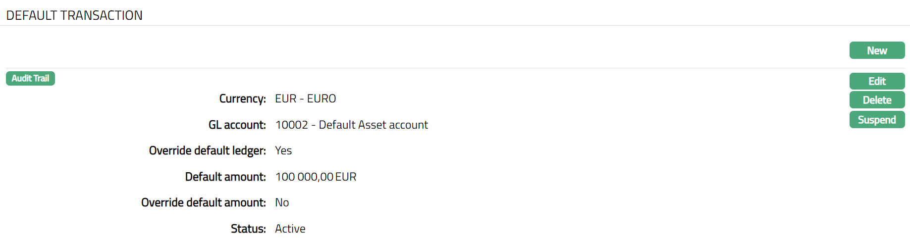 - Click Default Transaction tab and then click New. New Default Transaction page appears.