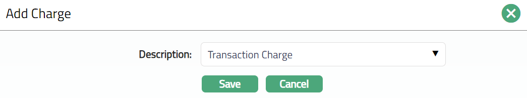 Description drop-down shows the list of charge schemes that are Transaction Charges, which match the Debit / Credit Indicator of the Transaction Code. It also shows all the charge schemes that are created as applicable to Both legs of a transaction. Select the required charge scheme to be attached to the Transaction Code.