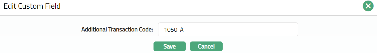 Department: It denotes the department to which the particular transaction code will be mapped. Initially the field will not display any value; only on using Edit, you can add a department to which the transaction code is mapped.