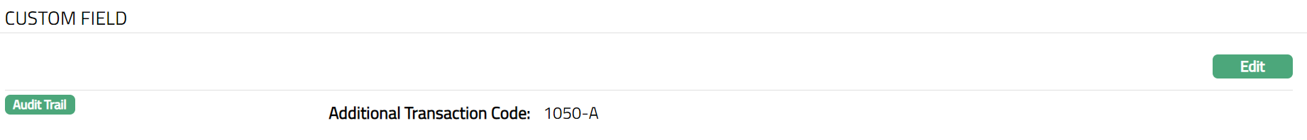 Using Custom Field tab, you can maintain the custom fields mapped to the Transaction codes. Depending on the custom fields created and mapped to Transaction codes (using Admin > System Codes > Custom Fields), the fields will be displayed on this tab