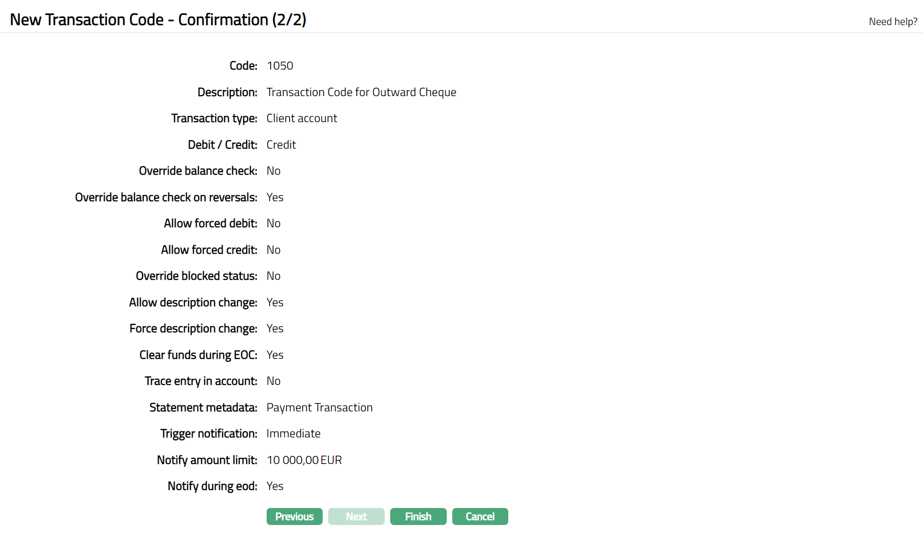 Click Next. New Transaction Code -- Confirmation (2/2) will appear.