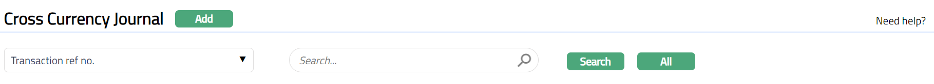- From General ledger menu, click Transaction entry and then Cross Currency Journal. Cross Currency Journal search page appears.