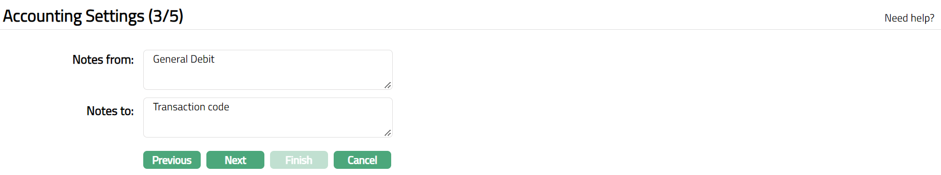 Click Next. Accounting Settings (3/4) page appears.
