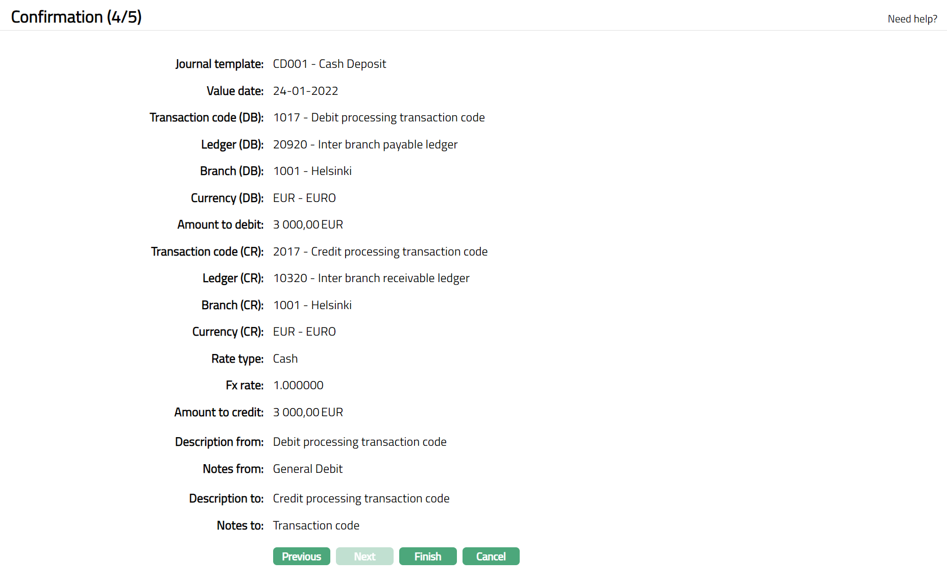 If the custom field is mapped to Cross currency journal under Admin > System Codes > Custom fields > Field mapping, then an additional screen will appear before the confirmation screen. The custom fields will be mandatory or non mandatory based on the rules set at the Field mappings. For more detail on custom field functionality please refer Admin> System codes > Custom fields > Field mappings manual.