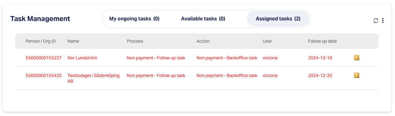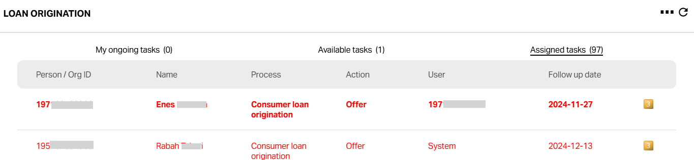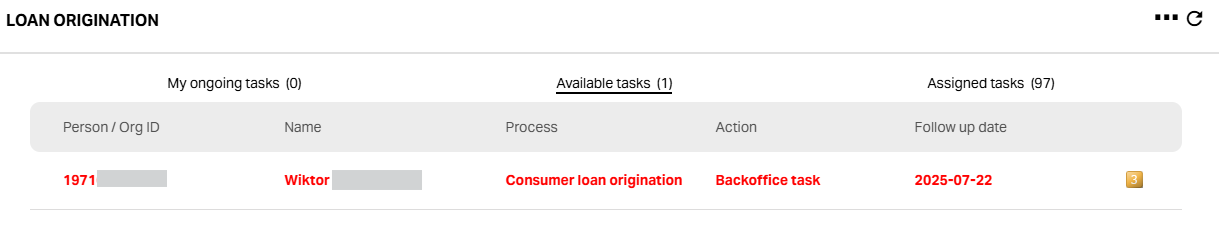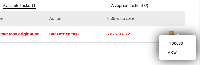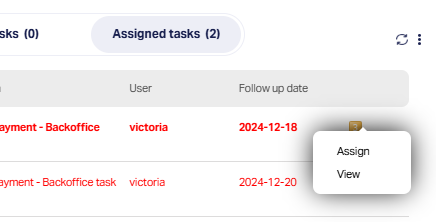 Action Menu: A yellow numbered icon indicating task options. The number's meaning is system-specific. Clicking it opens two options: Assign or View
