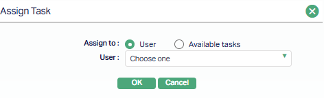 4. Selecting Assign opens the Assign Task screen, where you can reassign the selected task to another user or move it back to the pool of available tasks.
