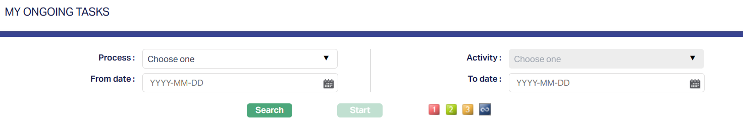 The My Ongoing Tasks tab displays tasks that you have already started but have not yet completed. These tasks remain in this tab until they are processed and marked as complete.