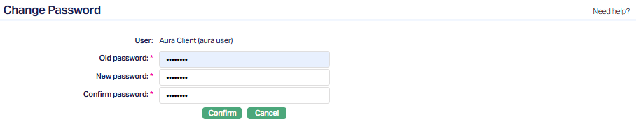 8. Aura Client (User profile and environment menu drop-down): The Aura Client drop-down in the top-right corner provides access to session-specific and user profile actions. It displays: