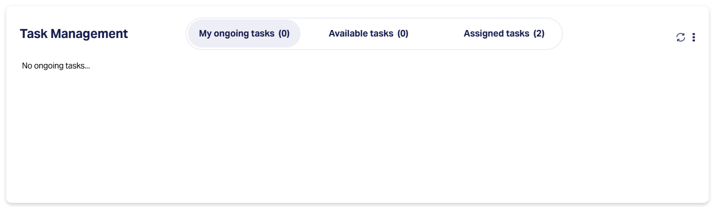 The Tasks Panel in the center section of the Landing Page displays tasks in three separate tabs - My Ongoing Tasks, Available Tasks and Assigned Tasks.