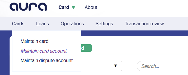 1. Access the Maintain card account Function available at Card > Cards. The Card Account Search page will be displayed.