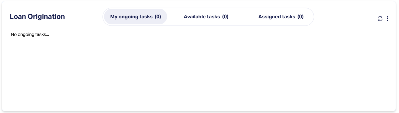 The Loan Origination panel on the Landing Page provides quick access to tasks related to loan processing. It contains three sub-tabs:
